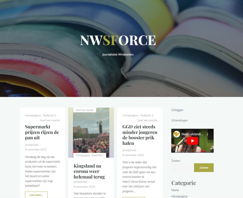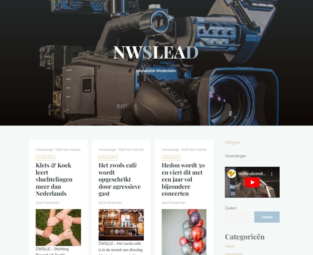 Journalistiek Windesheim Over ons Welkom op de site van de opleiding Journalistiek van de Hogeschool Windesheim in Zwolle. Op deze site zijn de producties van onze studenten te zien. Jaar 1 Jaar 2 Jaar 3/4 Afstuderen Journalistiek Studeren? Klik hier Wil je Journalistiek studeren op Hogeschool Windesheim Zwolle? Klik op de knop voor meer informatie over opendagen en hoe je moet aanmelden.