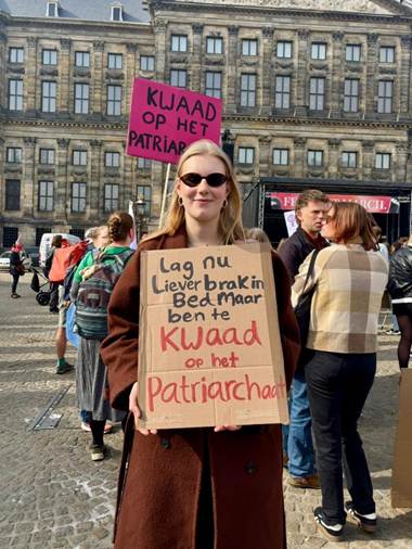 Een aantal weken terug is Noa, op nationale vrouwendag, naar de vrouwenmars in Amsterdam geweest. ‘’Het is een soort opluchting dat meer mensen denken zoals ik. Ik weet dat ik in mijn eentje niet de wereld kan redden, maar het voelt heel goed om een steentje bij te dragen. Ik denk dat dat de boosheid en frustratie draagbaar maakt. Sinds ik Dolle Mina ben, heb ik veel geleerd. Ik was daarvoor nog nooit naar een protest geweest en dacht dat je het overal mee eens moest zijn. Dat hoeft niet: het gaat om het signaal dat je afgeeft.’’