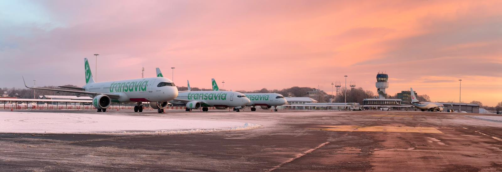 Transavia en Tui toestellen op Groningen Airport Eelde. Bron: GAE