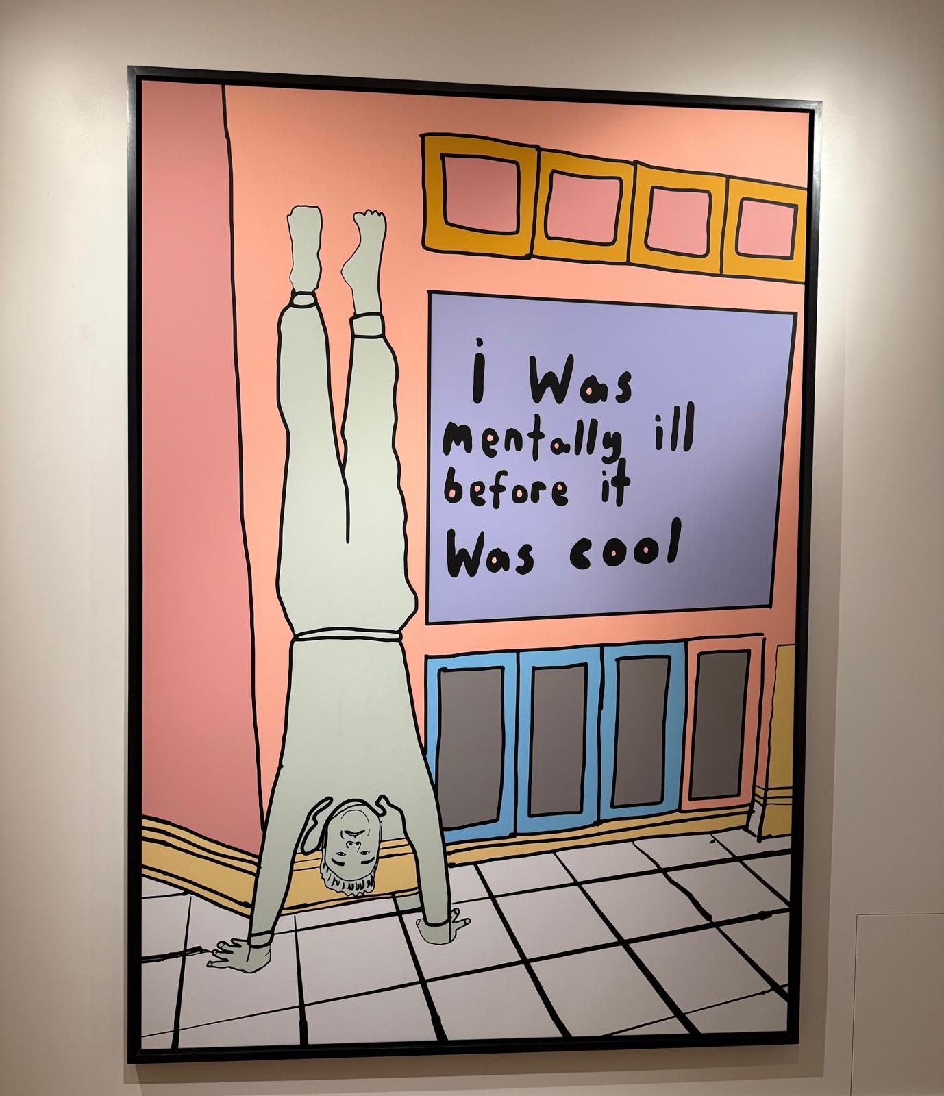 Schilderij met tekst: I was mentally ill before it was cool. Foto: Loes Vroon