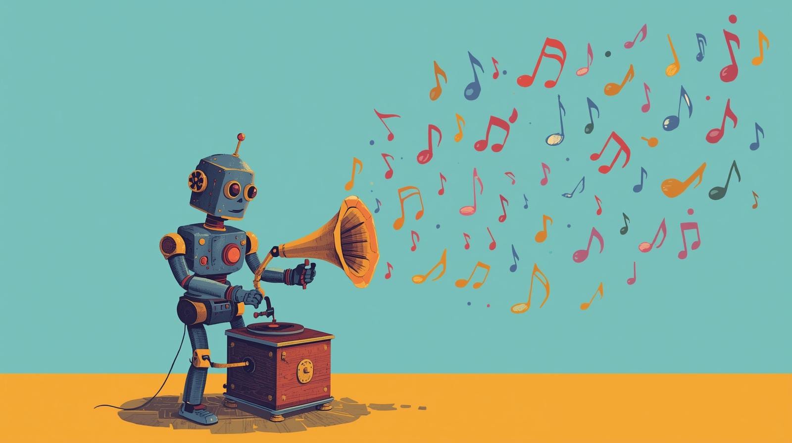robot met muzieknoten - bron: Canva AI