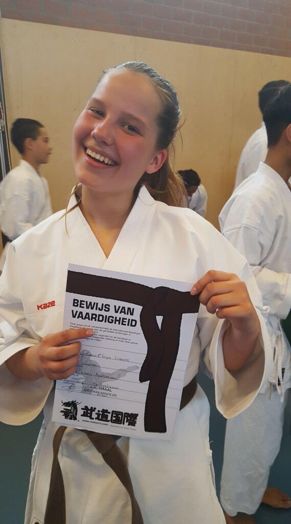 Demi begon met karate toen ze acht jaar was. ‘Ik zat al op turnles, maar mijn turnlerares werd aangeklaagd voor iets’. Toen moest ze iets anders zoeken. ‘Mijn broertje wilde graag bij karate gaan kijken’, vertelt Demi. De coach vroeg of ze ook mee wilde doen. ‘Ik had eigenlijk niet gedacht dat ik het leuk zou vinden’.